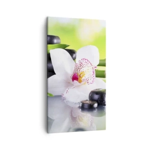 Impression sur toile - Image sur toile - Orchidée, pierres et bambou dans une composition spa harmonieuse - 80x120cm - Raffraîchissement de fraîcheur - Décoration murale moderne pour le salon et la chambre ARTTOR