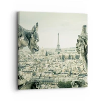 Impression sur toile - Image sur toile - Gargouilles surplombant les toits de Paris et la Tour Eiffel - 50x70cm - Bavardage parisien - Décoration murale moderne pour le salon et la chambre ARTTOR