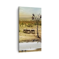 Impression sur toile - Image sur toile - Éléphants et animaux sauvages à un point d'eau au coucher du soleil - 80x120cm - "Et d'Eden coulait une rivière..." - Décoration murale moderne pour le salon et la chambre ARTTOR