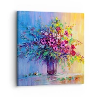 Impression sur toile - Image sur toile - Un bouquet de fleurs colorées dans un vase sur un fond dégradé - 50x70cm - Cadeau d'été de la prairie - Décoration murale moderne pour le salon et la chambre ARTTOR