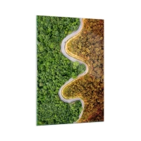 Impression sur verre - Image sur verre - Une route sinueuse à travers la forêt vue à vol d'oiseau - 80x120cm - Frontieres et differences - Décoration murale moderne pour le salon et la chambre ARTTOR