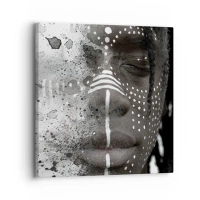 Impression sur verre - Image sur verre - Portrait aux motifs ethniques en noir et blanc avec un effet aquarelle - 50x70cm - Découvrez l'esprit primal - Décoration murale moderne pour le salon et la chambre ARTTOR