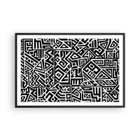 Affiche dans un cadre noir - Poster - Motifs géométriques noirs et blancs inspirés de la culture précolombienne - 100x70cm - Composition précolombienne - Décoration murale moderne pour le salon et la chambre ARTTOR
