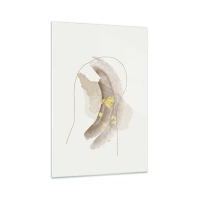 Impression sur verre - Image sur verre - Une composition abstraite dans les tons beige et or. - 70x100cm - rencontré dans l'espace - Décoration murale moderne pour le salon et la chambre ARTTOR