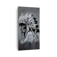 Impression sur verre - Image sur verre - Portrait d'un chef indien portant une coiffe traditionnelle - 80x120cm - Retour aux sources - Décoration murale moderne pour le salon et la chambre ARTTOR