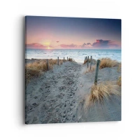 Impression sur toile - Image sur toile - Chemin menant à la plage au coucher du soleil - 70x100cm - Tu as versé l'éclat de l'arc-en-ciel sur les flots - Décoration murale moderne pour le salon et la chambre ARTTOR