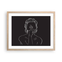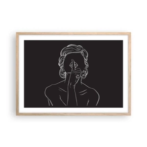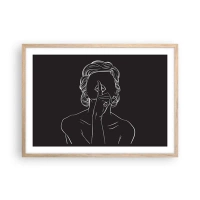 Affiche dans un cadre noir - Poster - Silhouette minimaliste d'une femme sur fond noir - 100x70cm - La beauté s'épanouit en silence - Décoration murale moderne pour le salon et la chambre ARTTOR