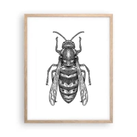 Affiche dans un cadre noir - Poster - Un motif de guêpe de dessin animé sur fond blanc dans un style minimaliste. - 100x70cm - D'une planète d'insectes - Décoration murale moderne pour le salon et la chambre ARTTOR