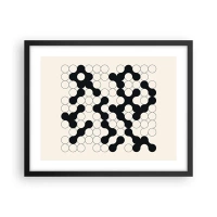 Affiche dans un cadre noir - Poster - Motifs noirs et blancs avec des cercles sur fond clair - 100x70cm - Jeu chinois – variation - Décoration murale moderne pour le salon et la chambre ARTTOR