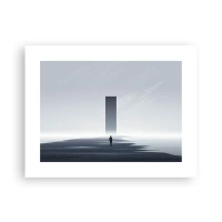 Affiche - Poster - Un paysage minimaliste avec une silhouette à côté d'un monolithe rectangulaire - 100x70cm - Opportunité ou menace ? - Décoration murale moderne pour le salon et la chambre ARTTOR