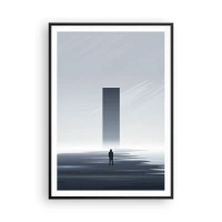 Affiche dans un cadre noir - Poster - Un paysage minimaliste avec une silhouette à côté d'un monolithe rectangulaire - 100x70cm - Opportunité ou menace ? - Décoration murale moderne pour le salon et la chambre ARTTOR