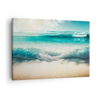 Impression sur toile - Image sur toile - Vagues de l'océan sur une plage de sable clair - 70x50cm - La paix de l'océan - Décoration murale moderne pour le salon et la chambre ARTTOR