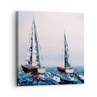 Impression sur toile - Image sur toile - Voiliers sur une mer agitée dans une composition picturale - 50x70cm - Confrérie du vent - Décoration murale moderne pour le salon et la chambre ARTTOR