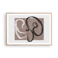 Affiche dans un cadre noir - Poster - Abstraction en noir et blanc sur fond beige - 100x70cm - Composition – la recherche de la plénitude - Décoration murale moderne pour le salon et la chambre ARTTOR