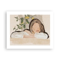 Affiche - Poster - La figure d'une femme sur fond de citronnier - 100x70cm - La beauté du sud - Décoration murale moderne pour le salon et la chambre ARTTOR
