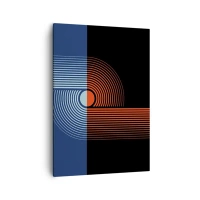 Impression sur toile - Image sur toile - Abstraction géométrique avec des lignes bleu marine et orange. - 50x70cm - Dans une étreinte géométrique - Décoration murale moderne pour le salon et la chambre ARTTOR